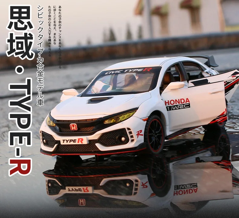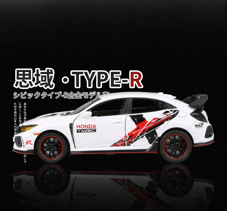 1:32 HONDA CIVIC TYPE R Alloy Sports Car Model Diecasts & Toy Vehicles Metal Car Model Sound and Light Collection Kids Toy Gift