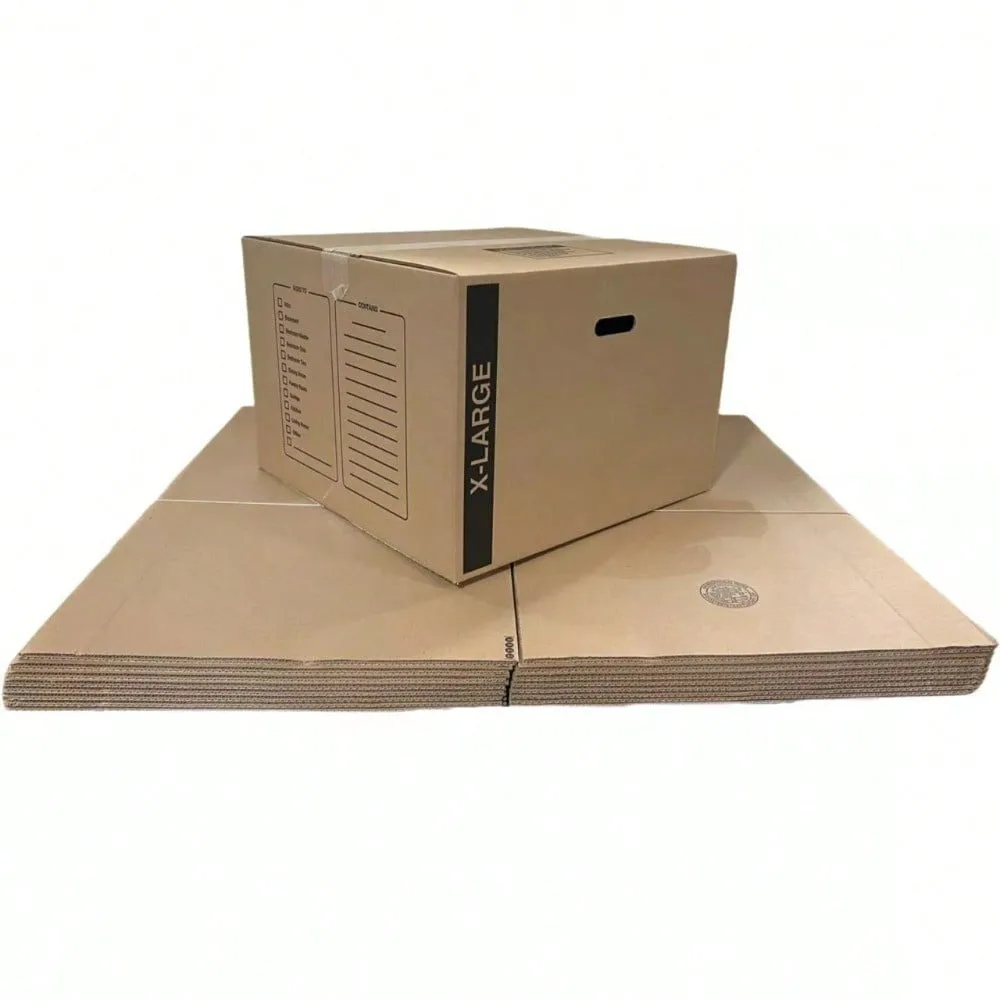 These sturdy x-large cardboard moving boxes are the perfect solution for your packing needs. The 20-pack of 23x23x16 inch boxes with handles provides ample space for storing and transporting smaller items during a move or for general storage purposes. Crafted with high-quality 32 ECT (Edge Crush Test) cardboard, these boxes offer exceptional strength and durability to protect your belongings. The convenient handles make carrying and stacking a breeze, ensuring a hassle-free moving experience. Whether you're relocating across town or simply reorganizing your living space, these versatile boxes will streamline the process and keep your possessions secure. With their compact size and robust construction, these cardboard boxes are a must-have for anyone seeking reliable and efficient packing solutions.
