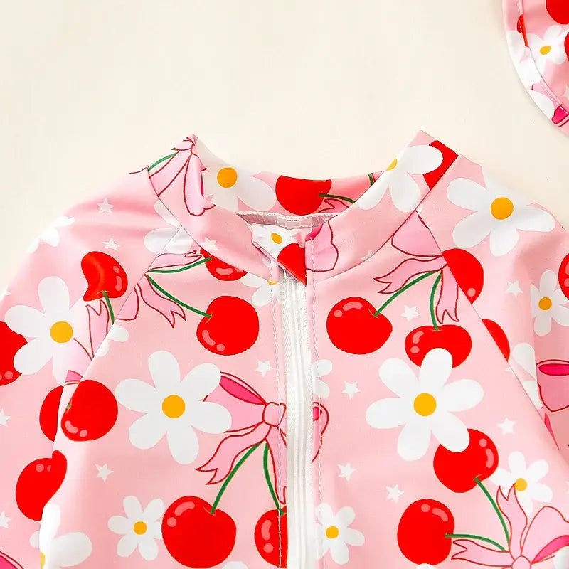 Baby Girls Swimsuit with Sun Hat Set Floral Print Ruffle Sleeve Zip Up Rash Guard Swimwear Beachwear for Toddler Girls