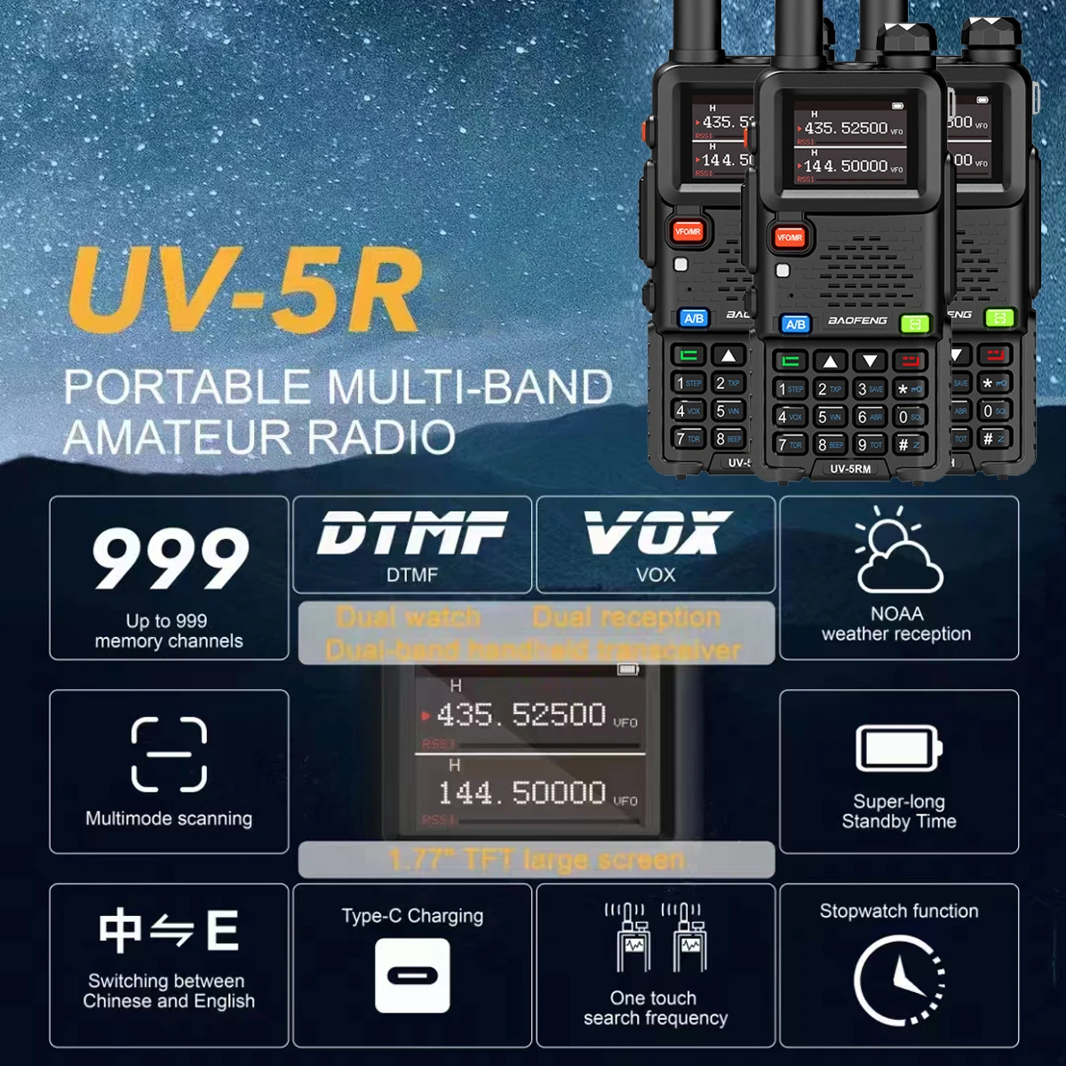 BAOFENG Radio 5RM 10W Ham Radio Long Range Handheld (Upgrade of UV-5R) BFUV-5RH Two Way Radio NOAA Weather Receiver Rechargeable
