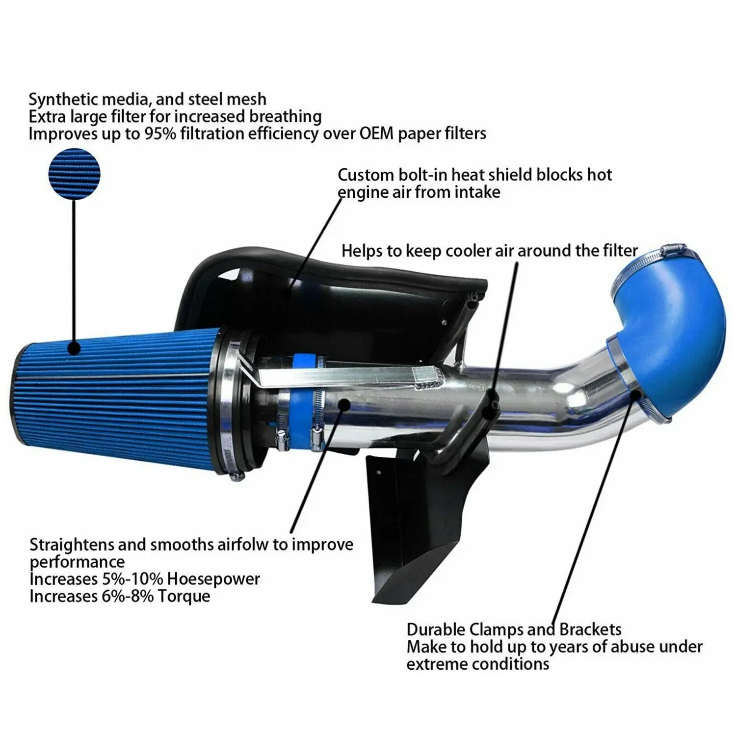 --- The air intake kit can help your engine to draw in more cold air resulting in better throttle response and higher explosive horsepower output.
