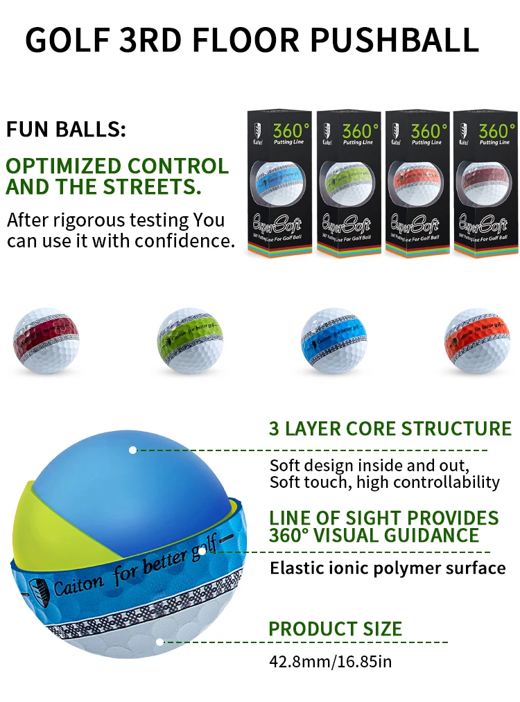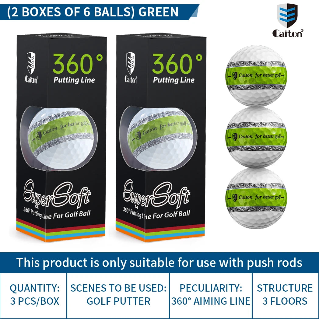 Caiton 6/3pcs golf ball, three-layer PU putter ball, 360° aiming line putter ball, making your putt more accurate and stable