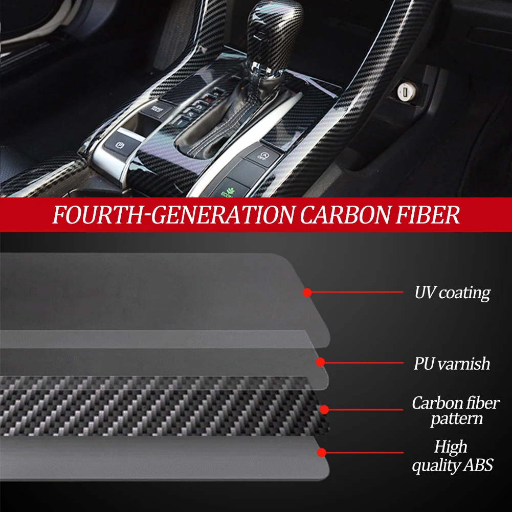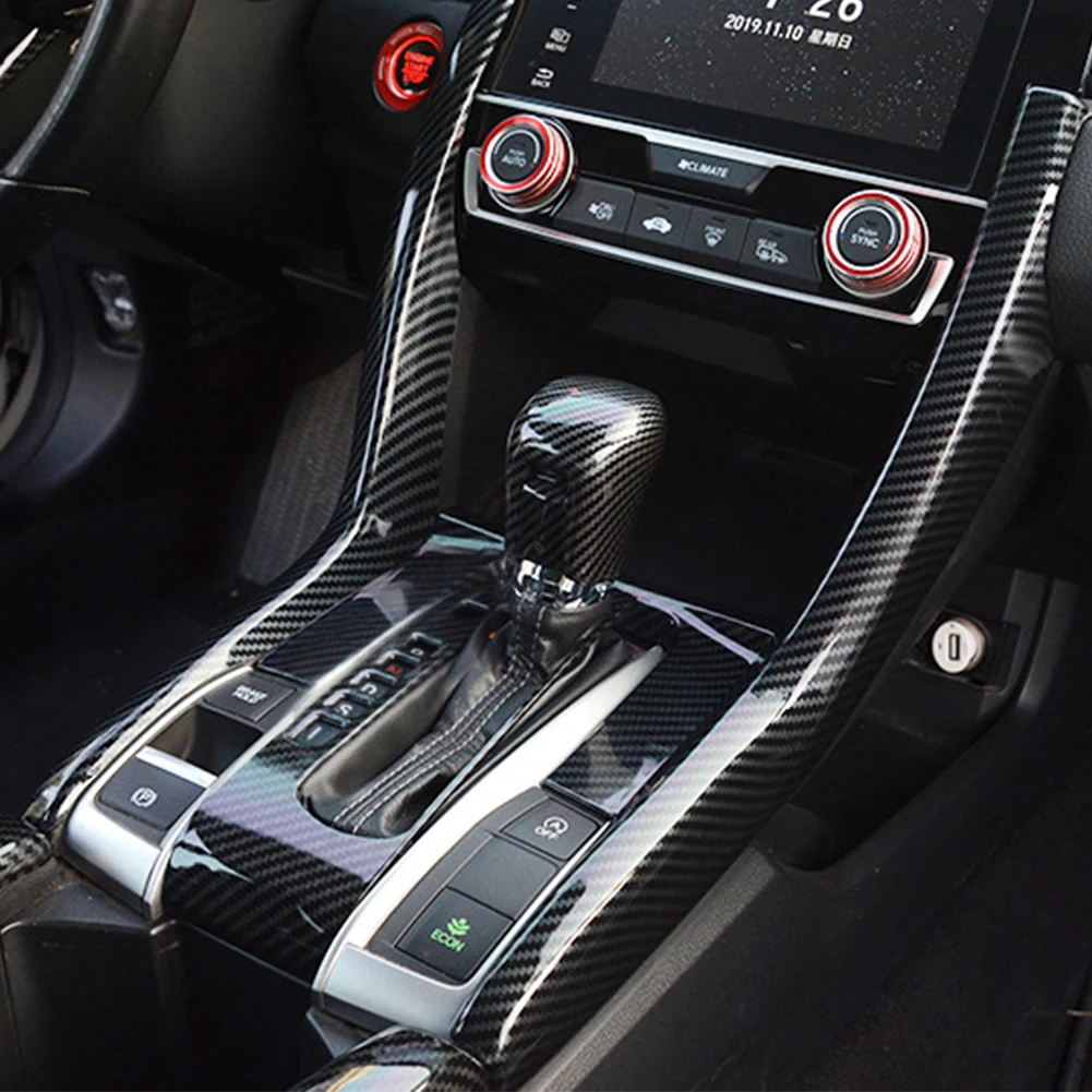 Carbon Fiber Car Gear Panel Trim Shift Panel Central Armest Box Decor Cover for Honda Civic 10th 2016-2020 Car Accessories