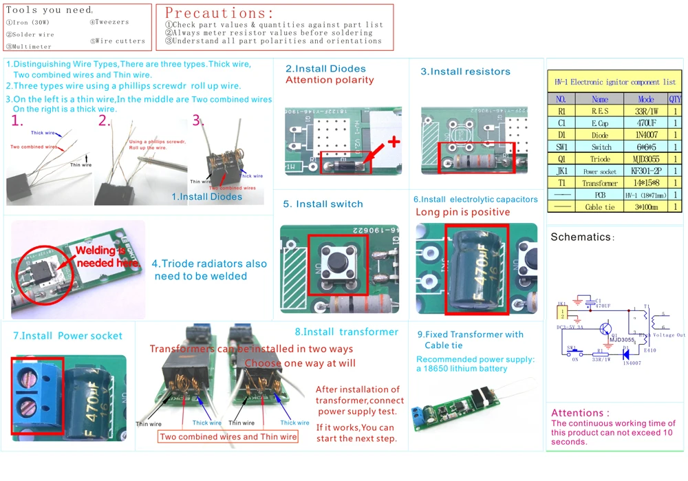 DC3-5V DIY Kit High Voltage Generator Arc Igniter Lighter Kit for DIY Electronic Production Suite
