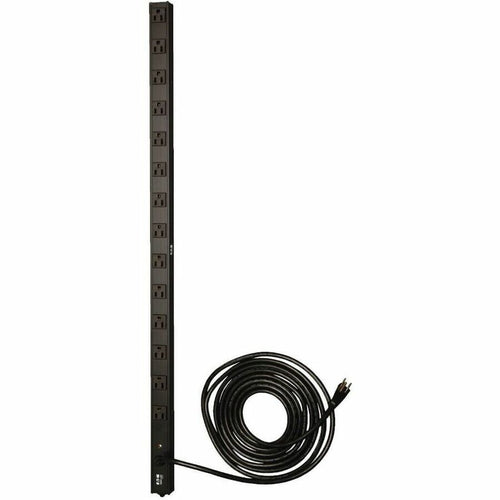 Tripp Lite's PDUV15 Basic Vertical Power Distribution Unit offers 15-amp, 120V multi-outlet AC power distribution in a convenient 36-inch mountable housing. It offers vertical power distribution in rackmount, raceway and workbench applications. Includes 14 NEMA 5-15R output receptacles, 15-ft. AC line cord and lighted power switch with locking transparent cover to prevent accidental shutoff. Sturdy all-metal aluminum housing stands up to demanding network, laboratory or factory environments. Unfiltered electrical pass-through makes the PDUV15 ideal for distributing alternate waveform UPS or generator power in rack enclosures, network closets and more. Included 14 NEMA5-15R outlets, 15-ft. AC power cord with 5-15P plug, 15-amp circuit breaker in rugged metal case design with universal and button mounting options. PLUG/OUTLETS - Input: NEMA 5-15P; Output: 14 NEMA 5-15R; ELECTRICAL - 120V AC, 50/60Hz, 15A; FORMAT - 36-inch mountable strip.
