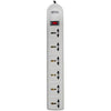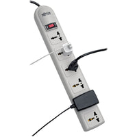 The Protect It! SUPER6OMNI B 6-Outlets Surge Suppressor offers economical AC surge suppression for full protection of 220-250V workstations, desktop PCs, telecom systems and other sensitive electronics. Built-in AC surge suppression shields connected equipment from damage and performance problems due to transient surges. The SUPER6OMNI B offers 6 universal outlets and a 1.8 meter AC line cord with a British plug. AC suppression rated at 750 joules shields equipment from surges and line noise. Lighted on/off switch with integrated cirucit breaker provides power control over connected equipment. Right-angle outlets keep connected cords from blocking adjacent outlets. Attractive light gray high-impact housing. Lifetime warranty.