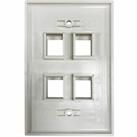 This single-gang wall plate provides a clean, simple method for terminating your premise wiring applications, including home theater (audio/video), VoIP phones (voice) and Ethernet (data). Any type of keystone jack, including those used in HDMI, Cat5/6, USB and DisplayPort installations, snaps easily into the cutouts for quick cable connection.