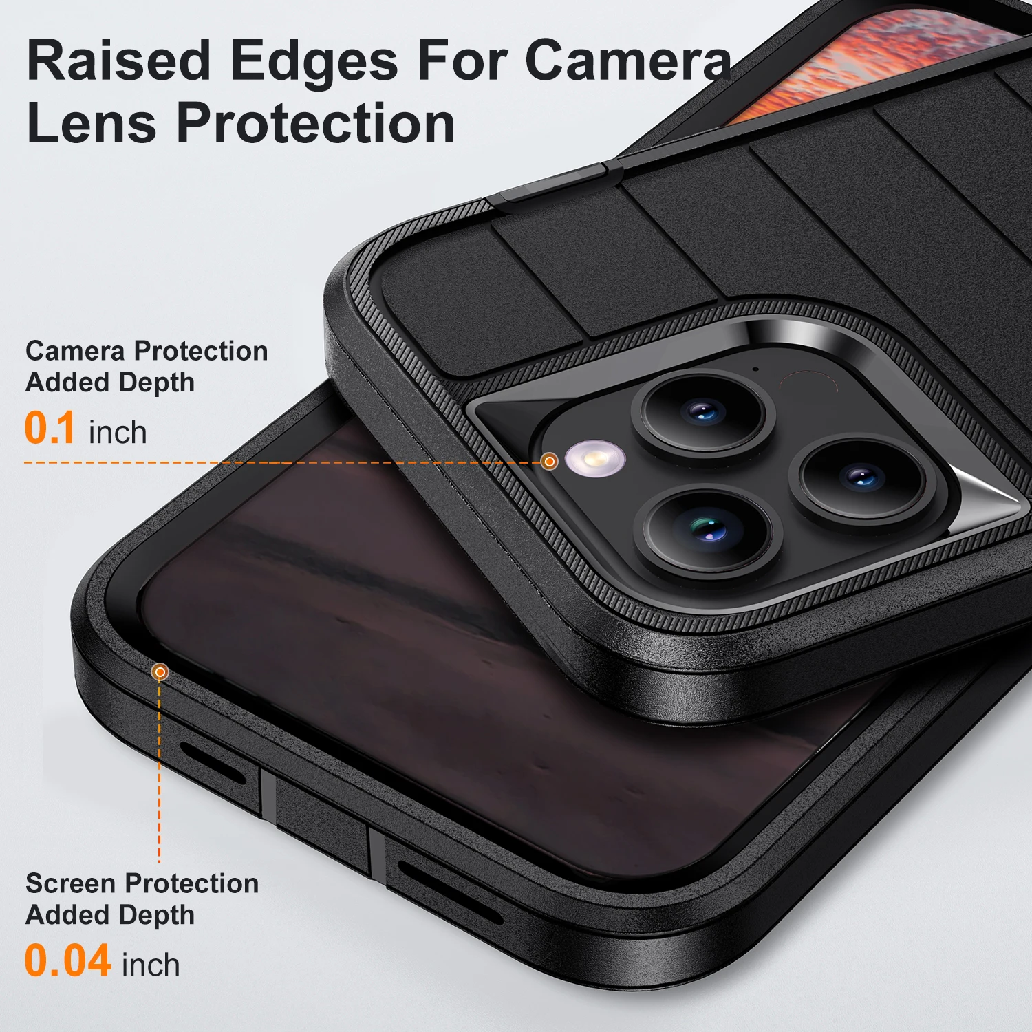 For iPhone 14/iPhone 14 Plus/iPhone 14 Pro/iPhone 14 Pro Max 5G 3-Layers Heavy Duty Protective Kickstand Phone Cover Black Case