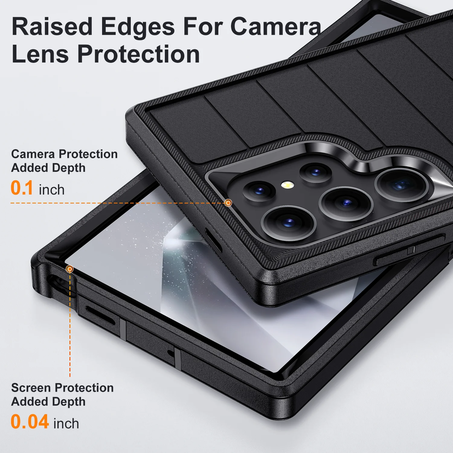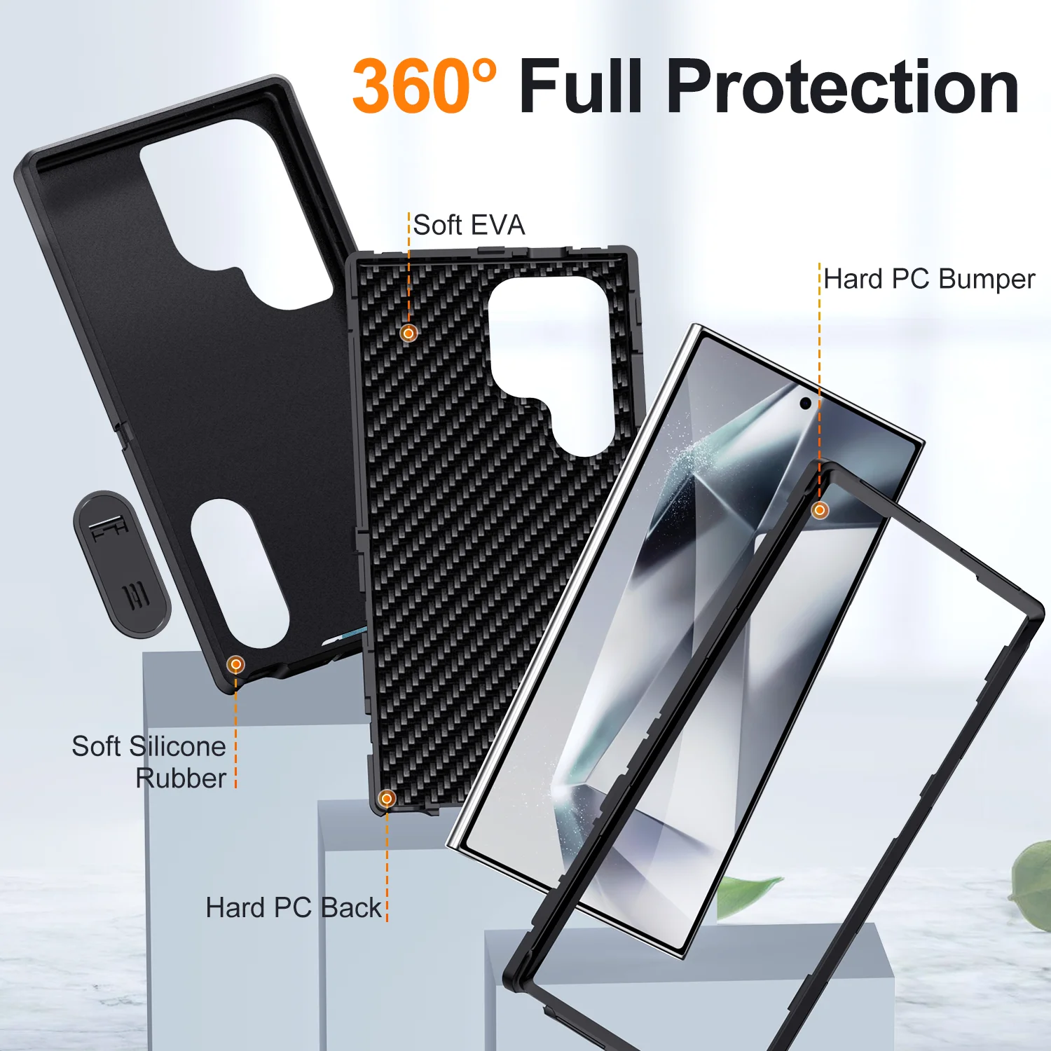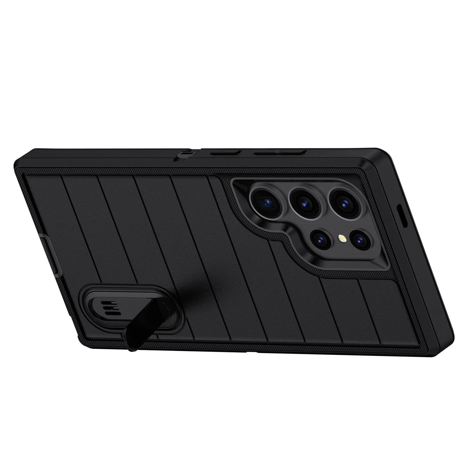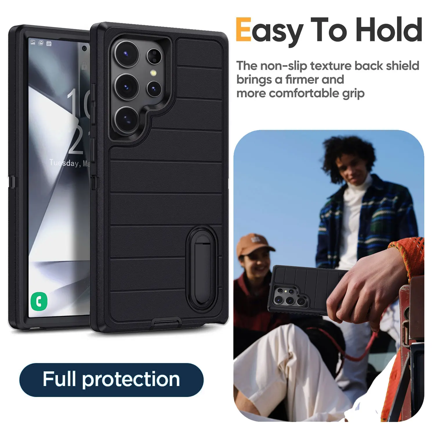 For Samsung Galaxy S24 Ultra/S24 Plus/S24 5G 3-Layers Heavy Duty Shockproof Rugged Protective Kickstand Phone Cover Black Case