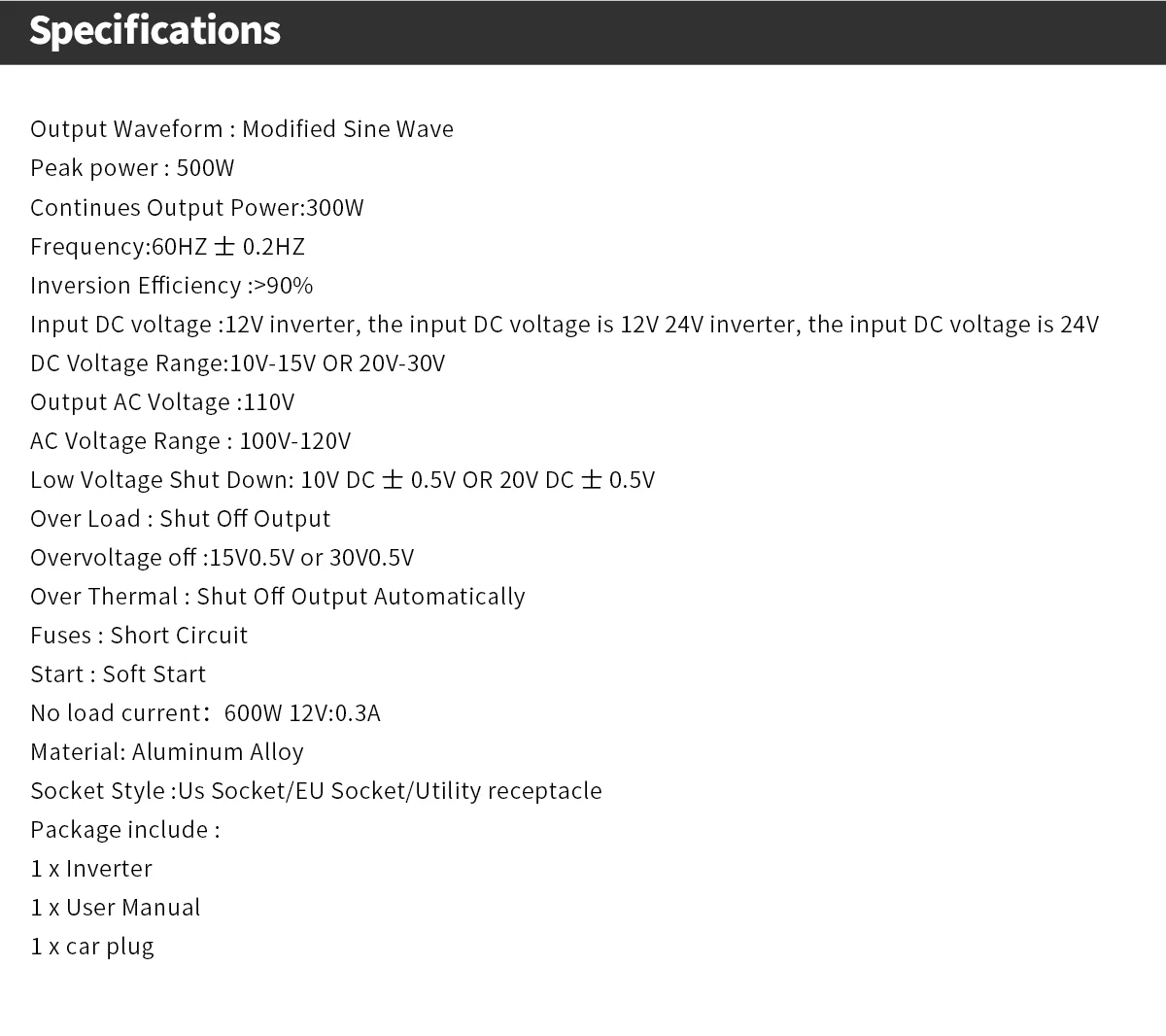 Modified Frequency Inverter Double receptacle 4USB 500W DC12V To AC110V Ports Car Adapter Portable Inverter