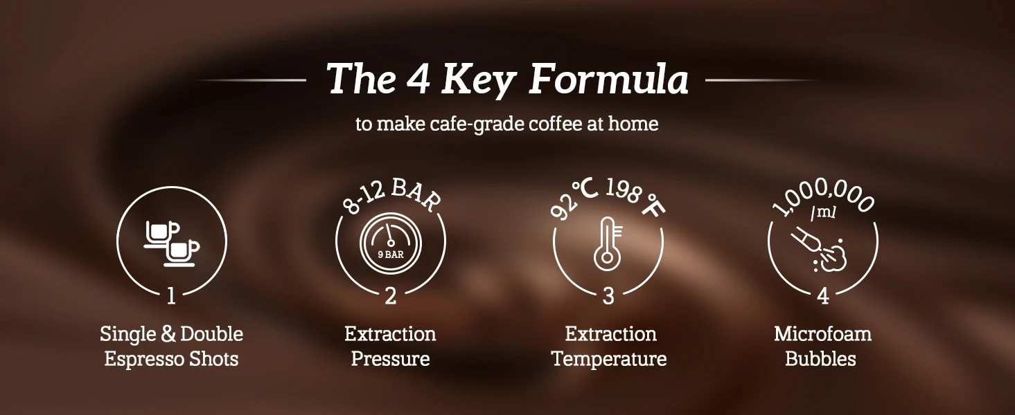 One or Two Shot - Experience our coffee machine with the unique stainless portafilter featuring double outlets. Tailor your coffee experience by selecting between one or two espresso shots. The ample 1.8L water tank spare you the need for frequent refills. Now, relish the freedom to enjoy your favorite brew without interruption.