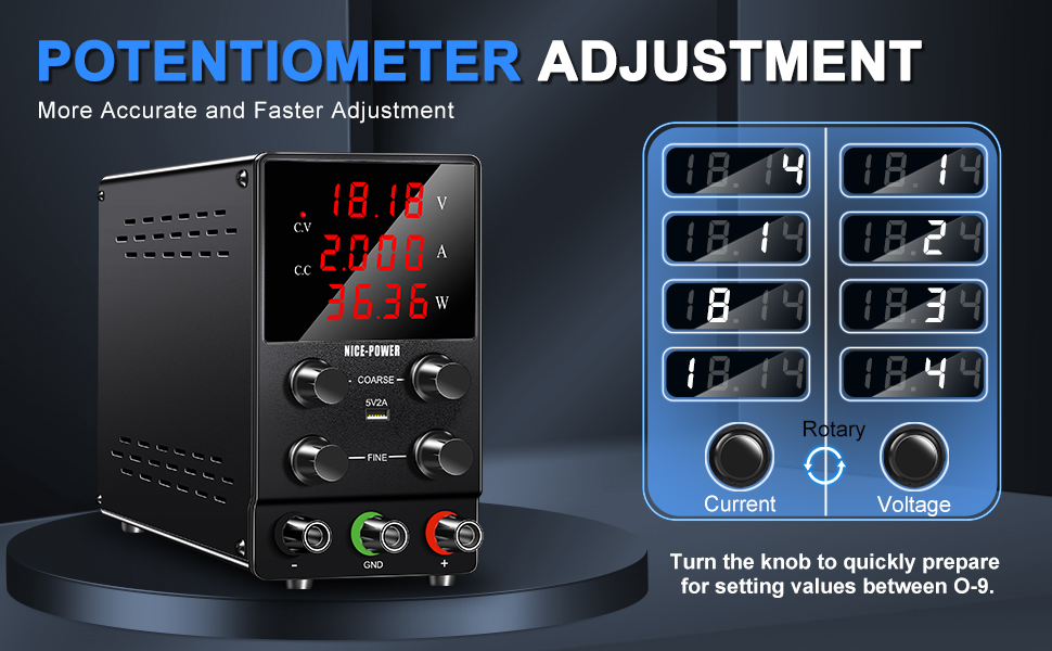 New Design: All-metal body and more compact size, light weight and portable, stable. You can easily carry the DC power supply variable.