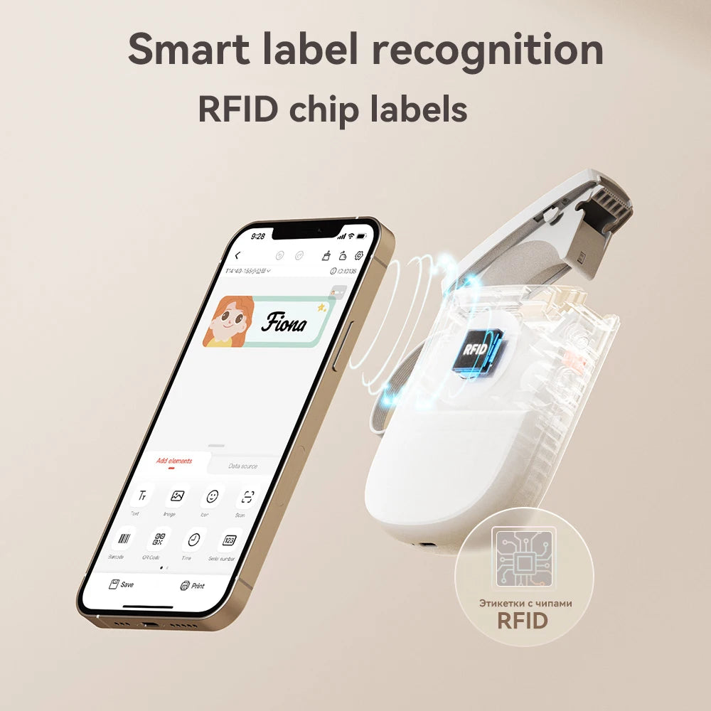 Wireless mini label maker can print within 10-meter away from the smartphone connected by Bluetooth.