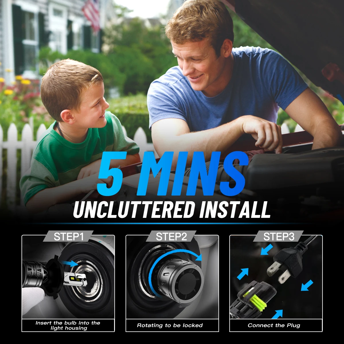 【300% Brighter Than Original Bulb】---Ditch your dim yellow halogens and make way for 6500K bright white one, 13000lm 60W high power gives you the best horizons on the road, 3 times brighter let you driving confident at night.