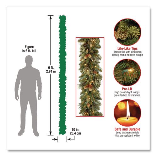 Pre-Lit Carolina Pine Garland, AC Powered, Clear Incandescent Lights, 108" Long, Green