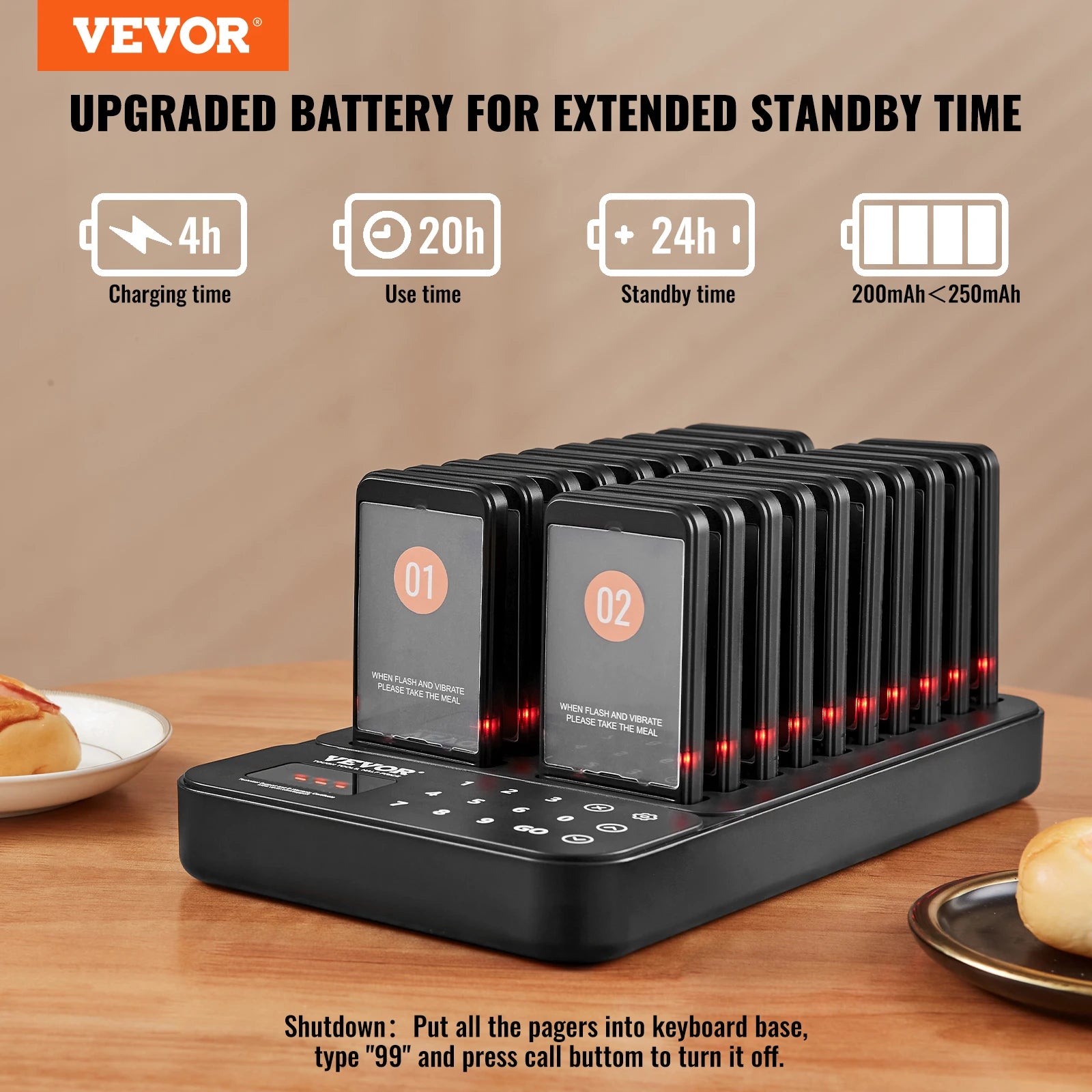VEVOR 20 Buzzers Restaurant Pager System Wireless Range Waiting Pager Signal Customer Calling Beeper with Vibration Flashing