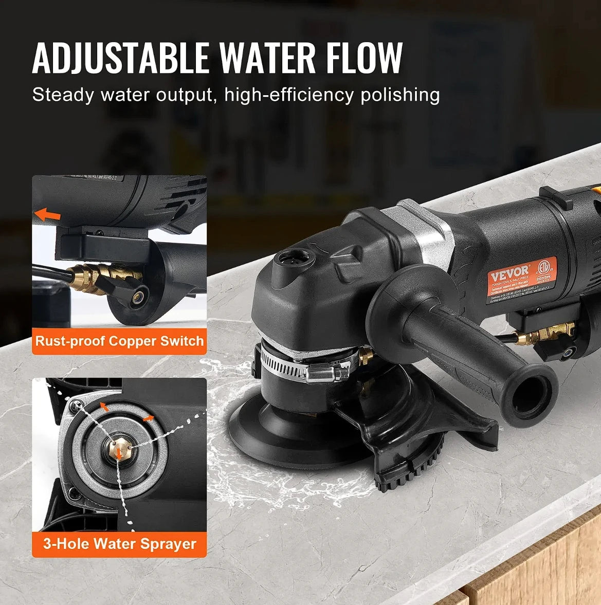 6-Speed for Precise Polishing: VEVOR wet stone polisher offers 6 variable speeds from 700 to 3000 RPM, making it versatile for various surfaces. Effortlessly tailor the speed to work with materials such as marble, granite, concrete, and tiles for a flawless finish.
