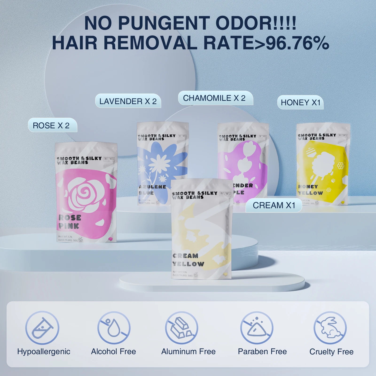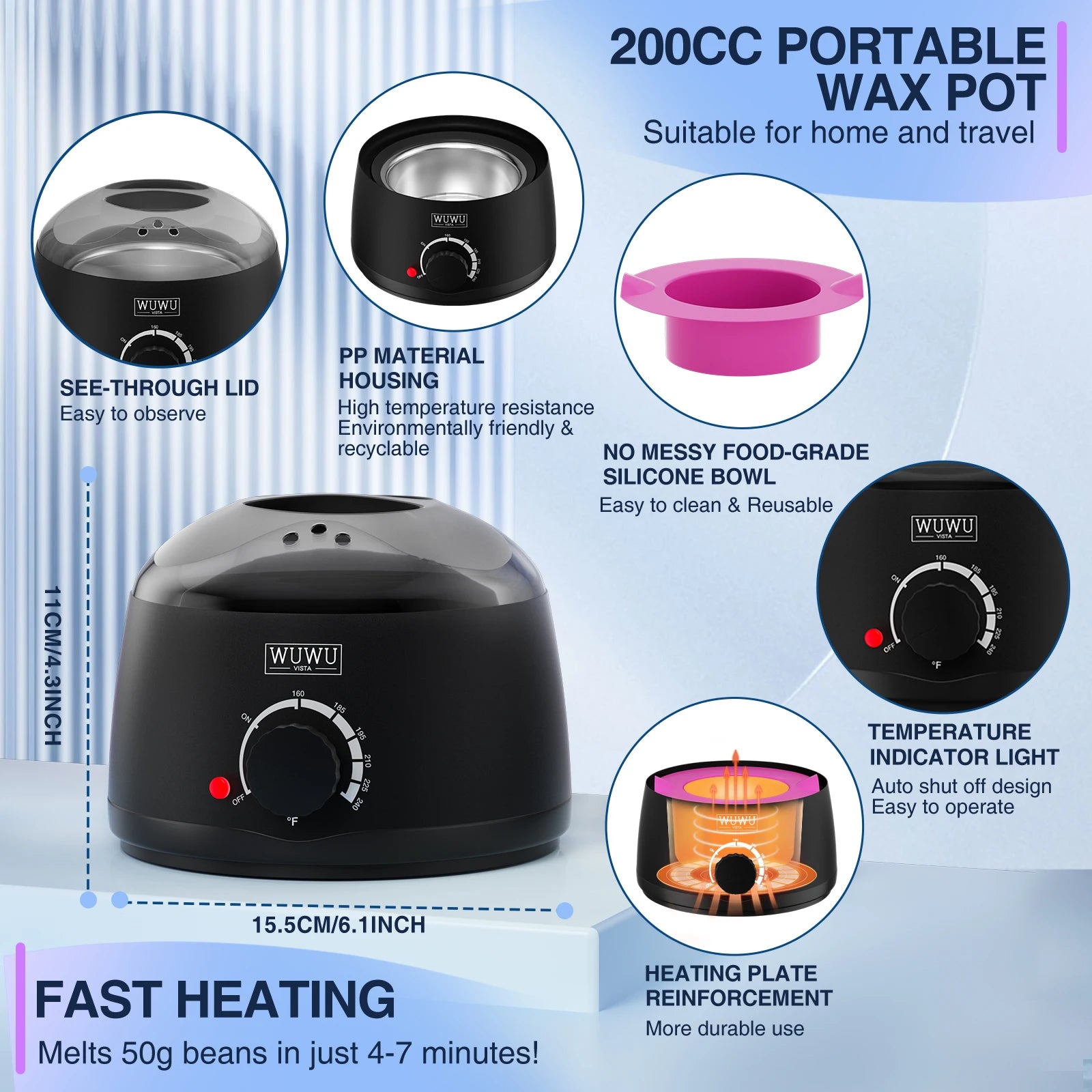 Waxing Kit 69 items, WUWUVISTA Christmas Gift Set Hair Removal Hard Wax Kit Wax Warmer Wax Beads Face/Brazilian/Full Body/Bikini