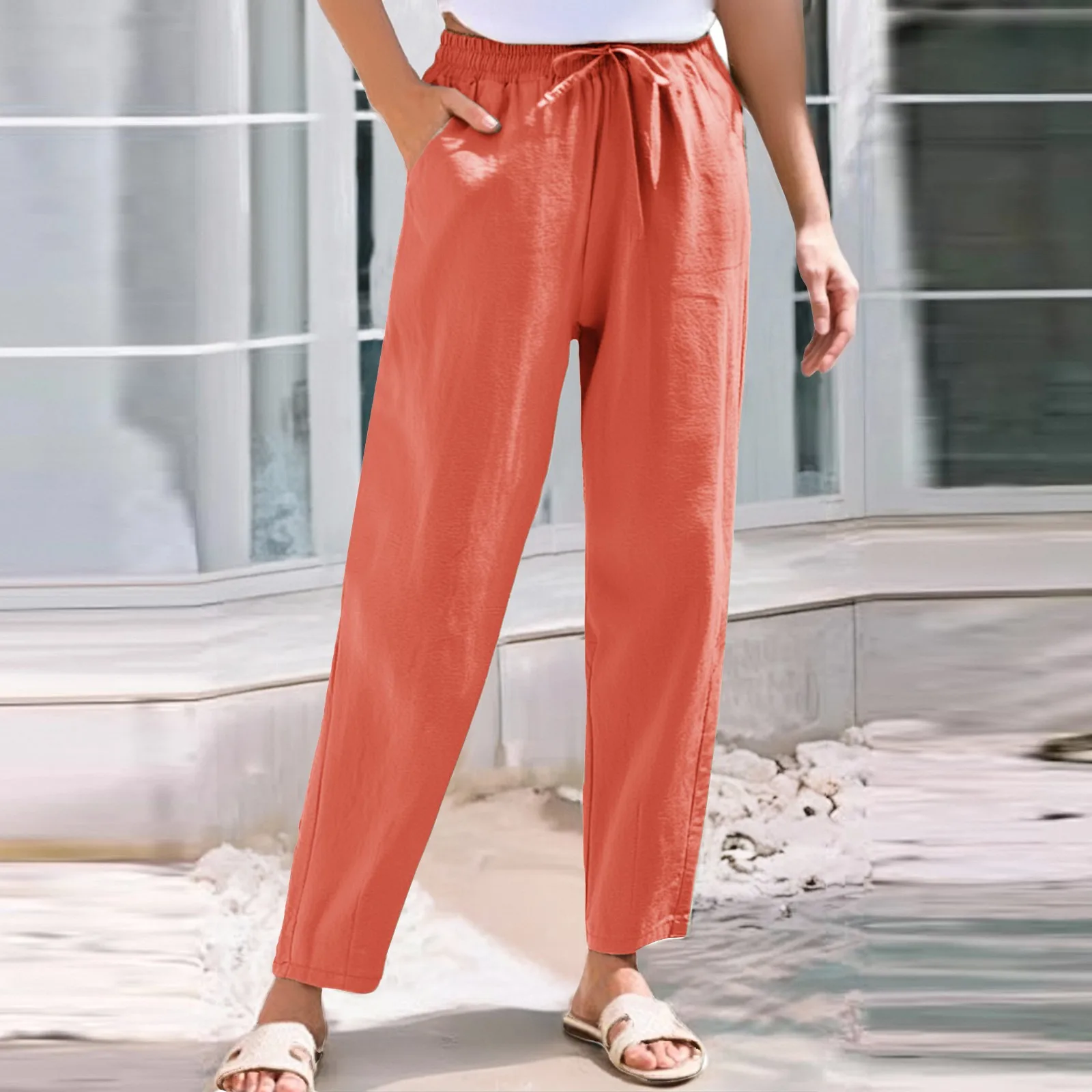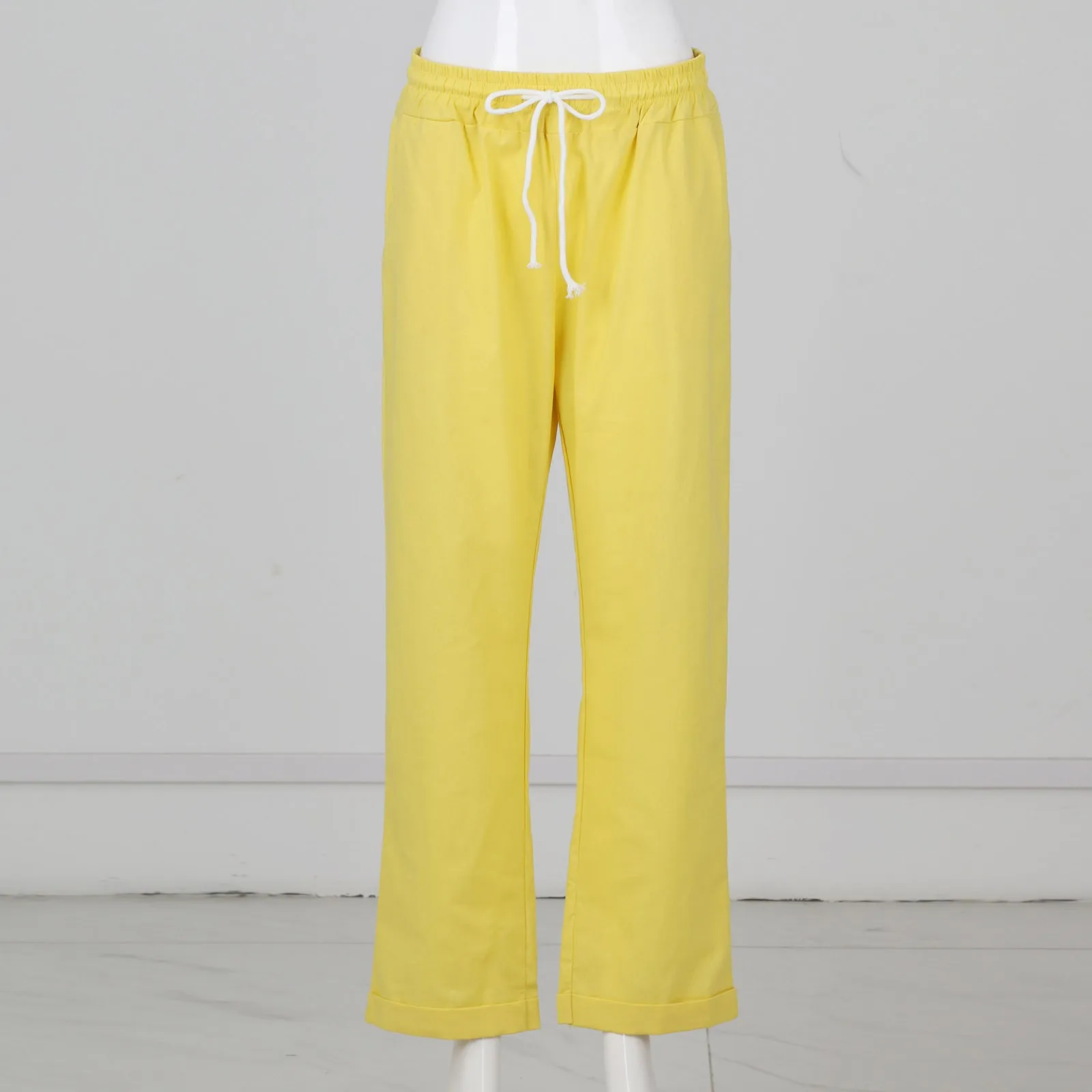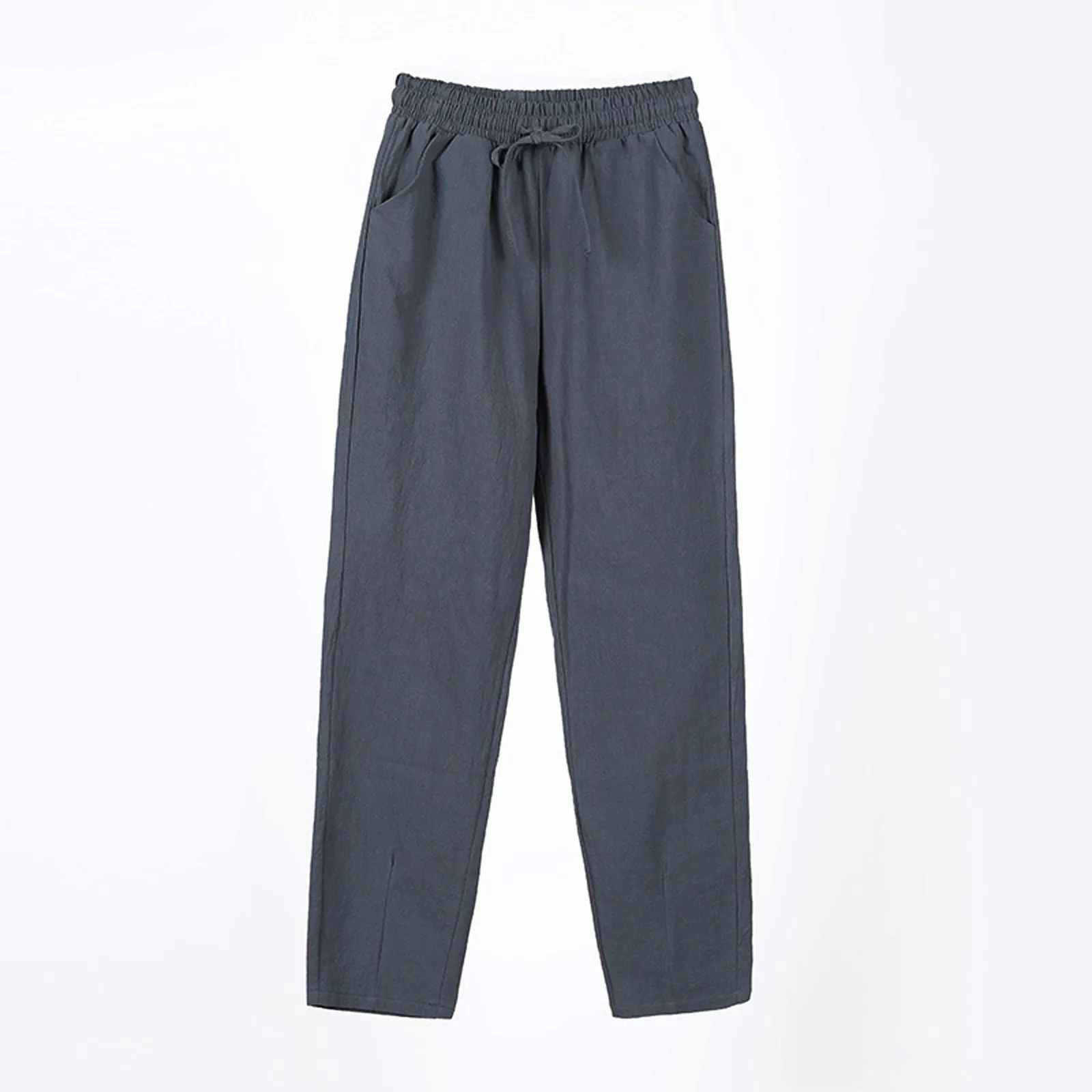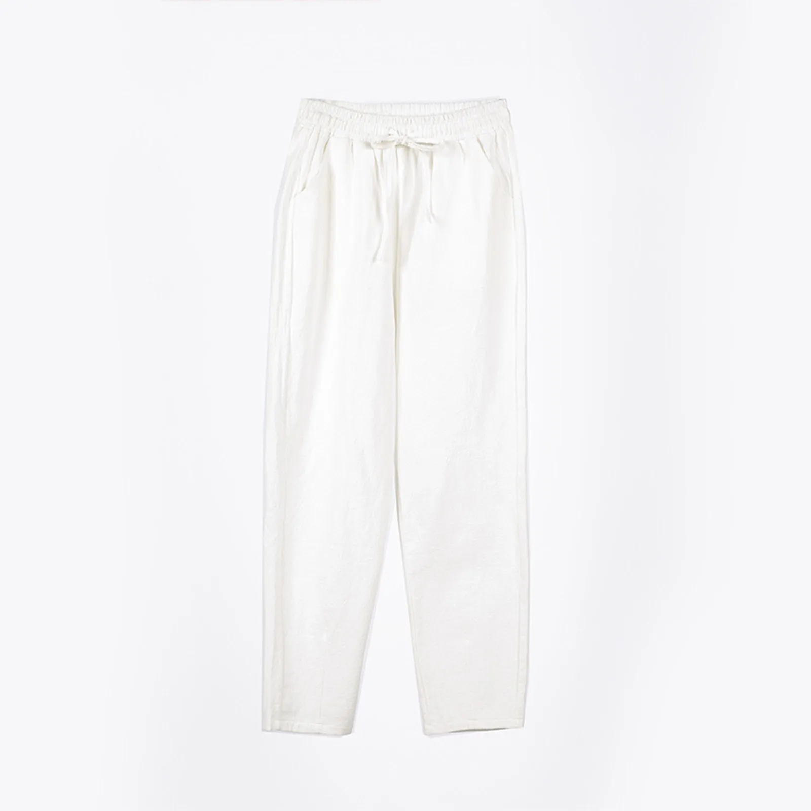 Women Cropped Pants Cotton Linen Baggy Trousers Drawstring Elastic Waist Pantalones Korean Fashion Solid Straight Pants штаны