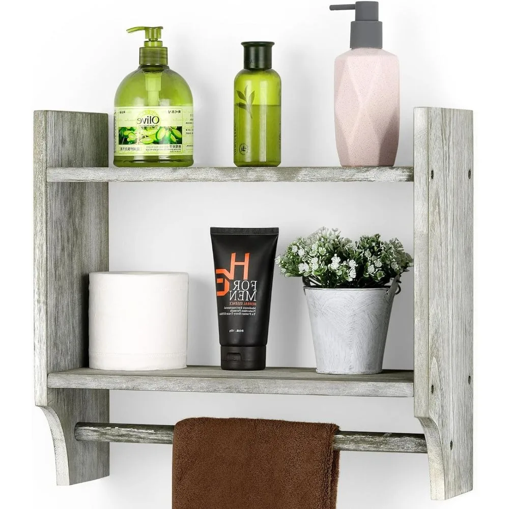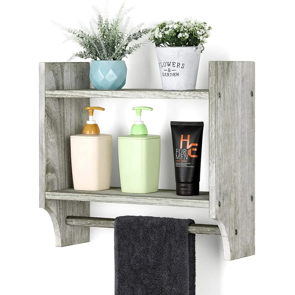 Wooden towel rack for bathroom storage cabinet above wall mounted bathroom rack
