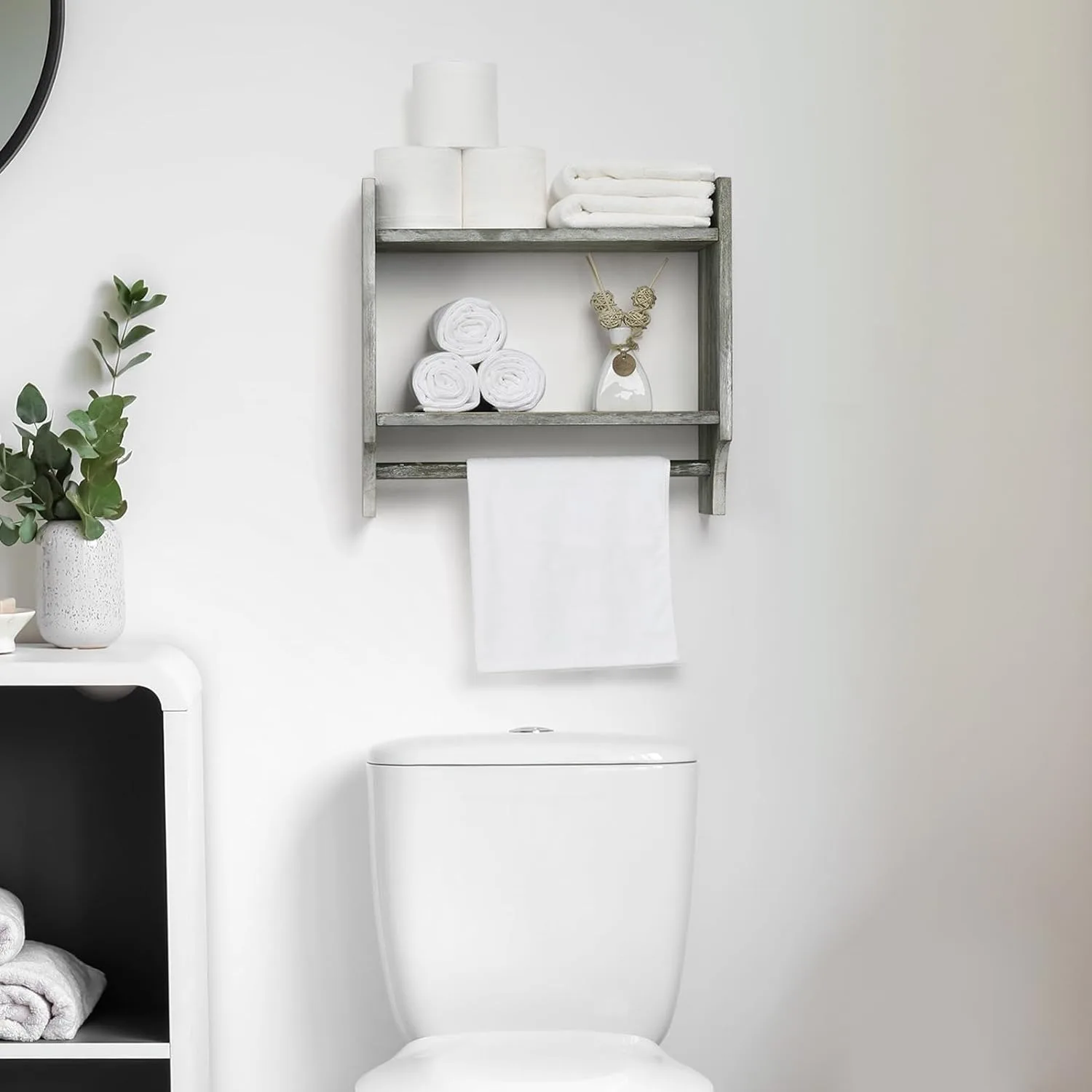 The wall display rack is made of high-quality paulownia wood, and this toilet storage cabinet retains the most primitive wood grain, simple and simple, which can be matched with any home decoration.